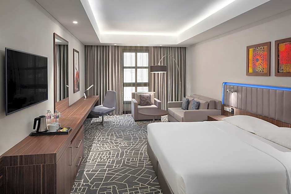 This 90-square-yard room comes with a Lounge in the separate living room area, as well as rain shower in the bathroom.
